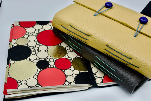 Create your own soft bound leather journal and personalize it with special papers and closures. Learn to fold papers and the long stitch technique, a way to bind the sections without the use of an adhesive. At the end of the class, you will have a small blank journal ready to fill with stories, lists, doodles, sketches, poems, or whatever you like!