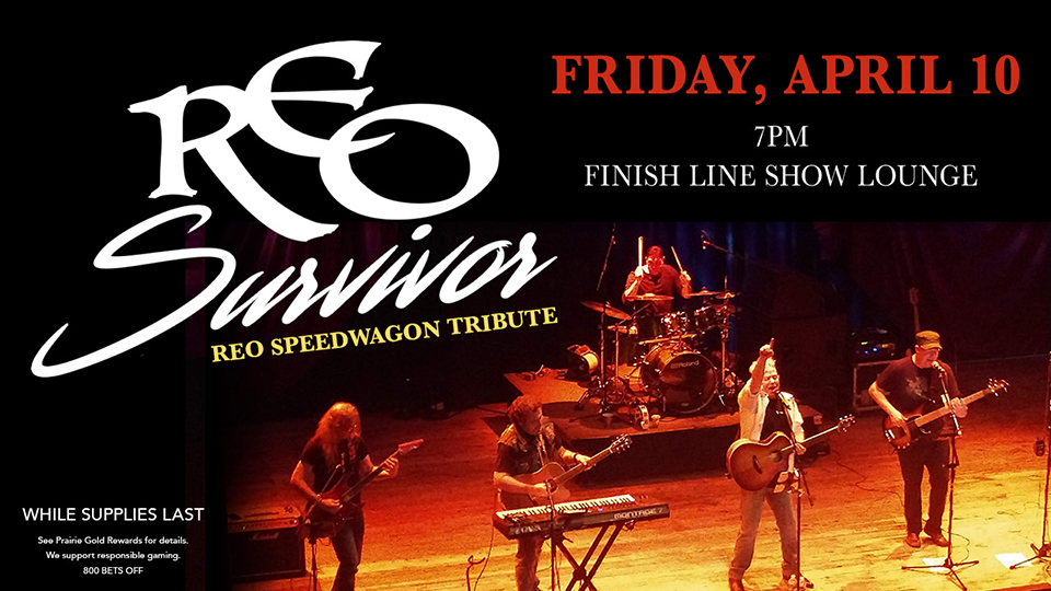 Don’t miss Reo Speedwagon Tribute, REO SURVIVOR, in the Finish Line Show Lounge.