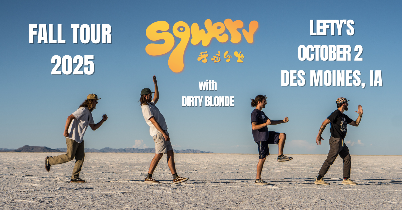 Warning Oh, no! You don't have JavaScript enabled!Javascript is required to use this website and to purchase tickets. Share Share Tweet Add to Calendar Set Reminder Oct 02 Sqwerv at Lefty's Thu. Oct 2, 2025 at 7:00pm CDT 21 and Over Today 21 and Over Get Tickets Details Event Stats Today 21 and Over Event Description Comments Reserve Tickets QTY 0 1 2 3 4 5 6 7 8 9 10 general admission $10.00 + $2.40 Service Fee $12.40 One of your subscriptions does not meet the requirements Venue Details Lefty's Live Music 2307 University AveDes Moines, IA 50311