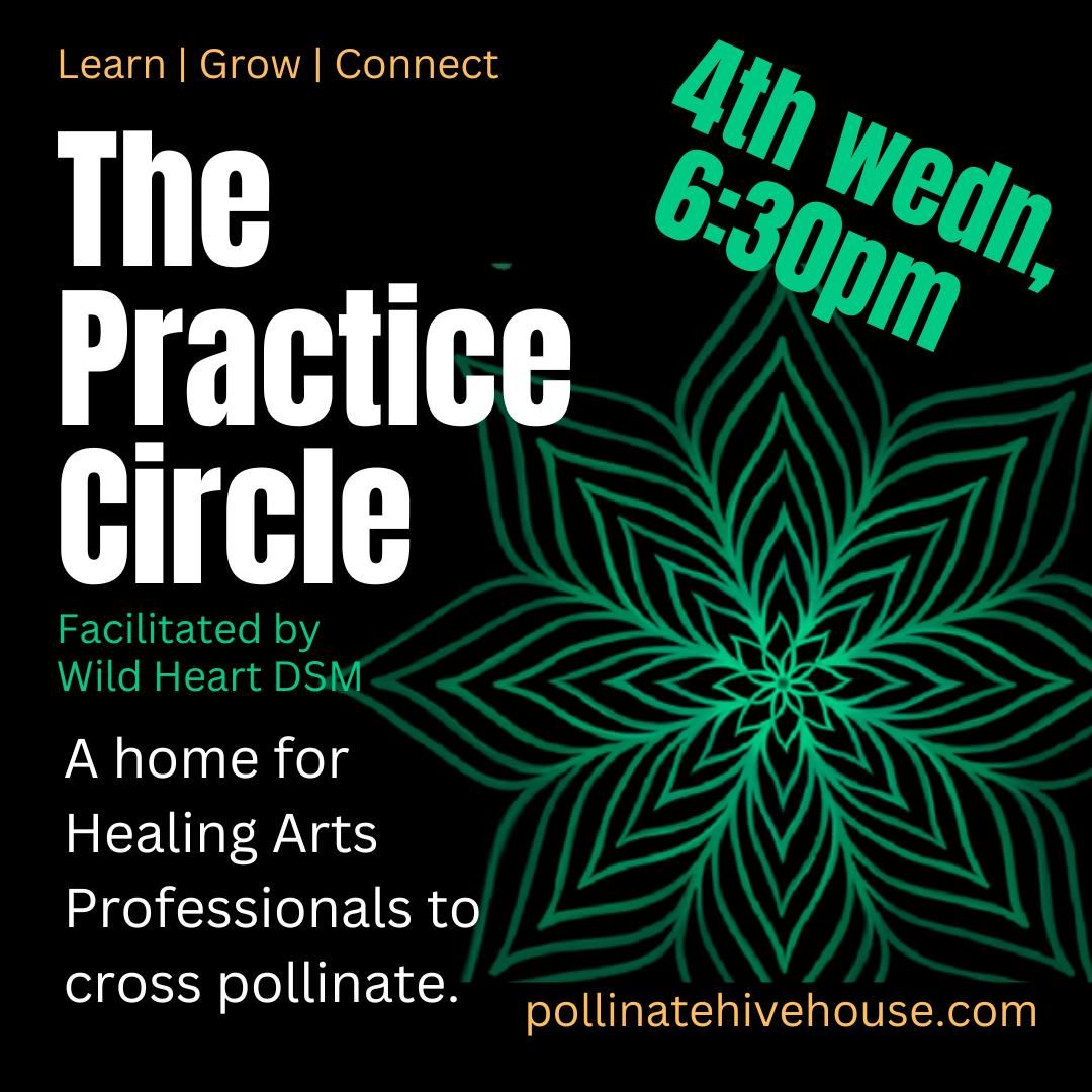 The Practice Circle is for caregivers and healing arts professionals only. This includes but isn't necessarily limited to body work professionals, energy workers, therapist, spiritual directors, nurses, doctors, movement specialists, metaphysical practitioners, sound healers, nutrition and and herbal pracitioners and ritual facilitators. It is a confidential and safe space for caregivers to gather, building support for themselves and grow / share their modality. Space is limited.