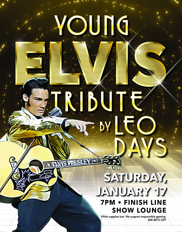 Leo Days returns in this stunning tribute to Elvis Presley... This performance will transport you to the Vegas Strip - complete with Vegas showgirls and a live band!  Leo is a versatile performer with his ability not only to sing, but he is extremely talented as he also plays guitar and piano. He is one of the few Elvis Tribute Artists that performs the sexy black leather of the 60's to the Vegas years of the 70's. Leo captures each audience as he interacts with them while performing with his dynamic moves.